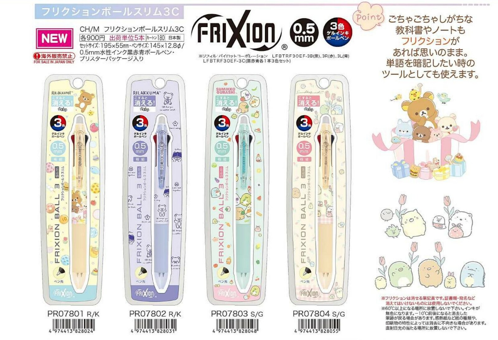 Indulge in the joy of writing with the Frixion Ball Slim 3C Rilakkuma x Sumikko Gurashi Pens, where functionality, color variety, and kawaii aesthetics come together for the ultimate stationery experience! πΎπ