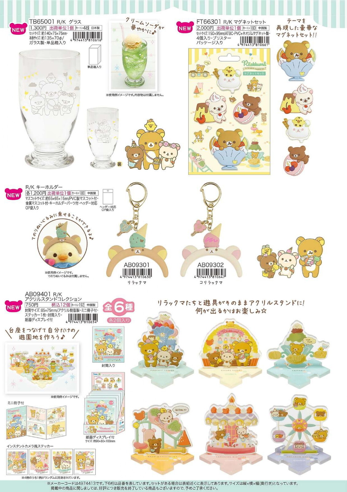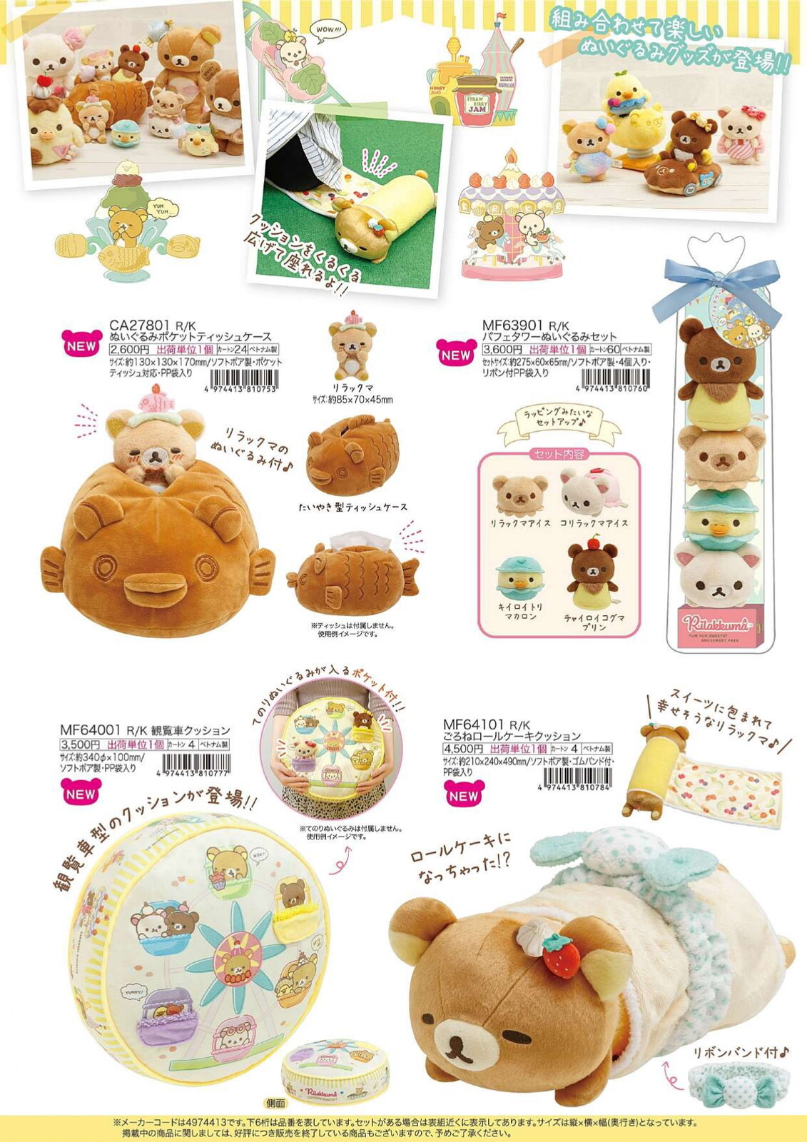 Rilakkuma, Korilakkuma, Kiiroitori, Chairoi, Pendant Rilakkuma, Pendant Chairoi, Tenori Plush Toy Set, Parfait Tower plush toy set, Ferris wheel cushion, Mystery Acrylic figure