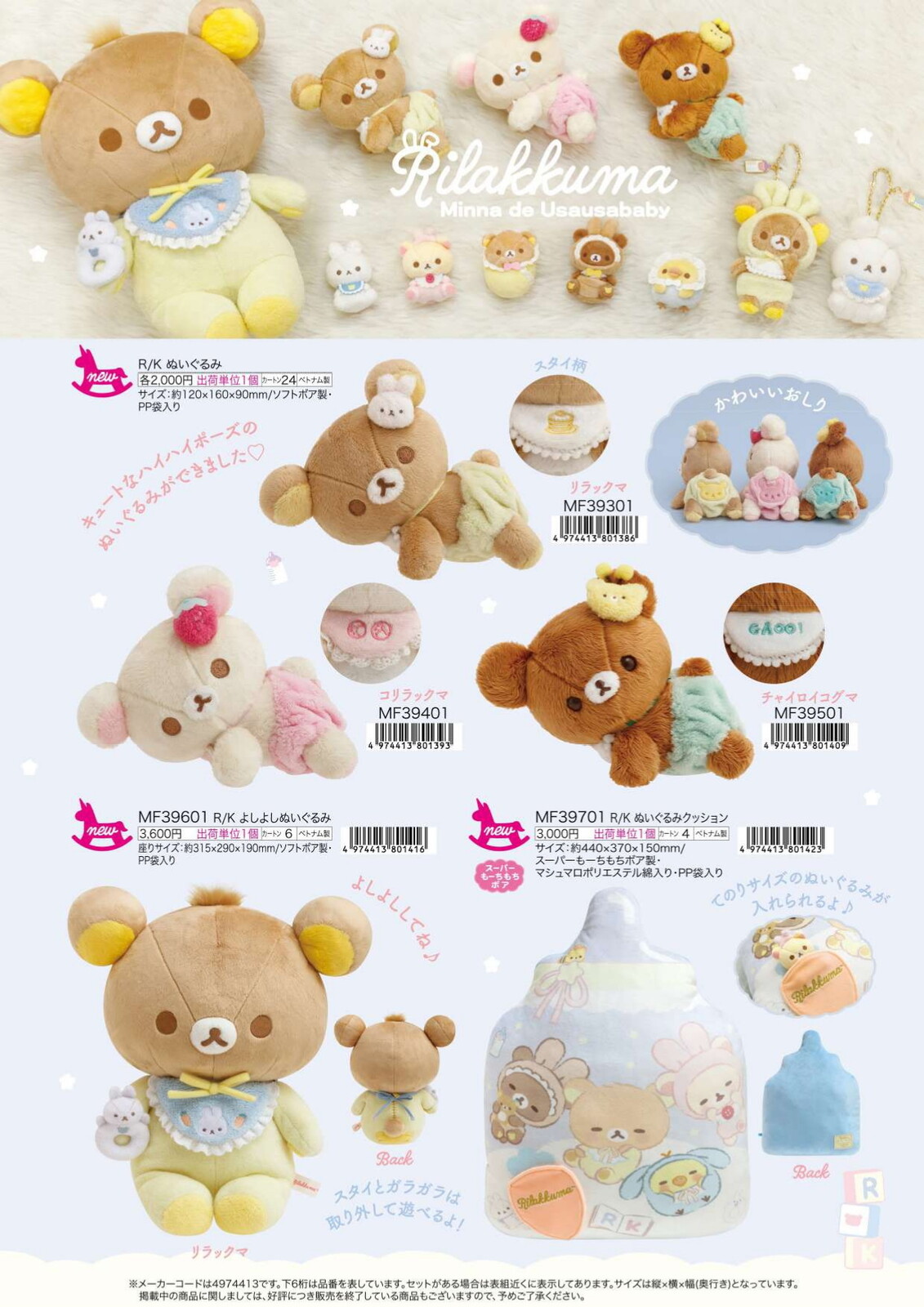 - High-quality merchandise showcasing Rilakkuma in endearing baby outfits.