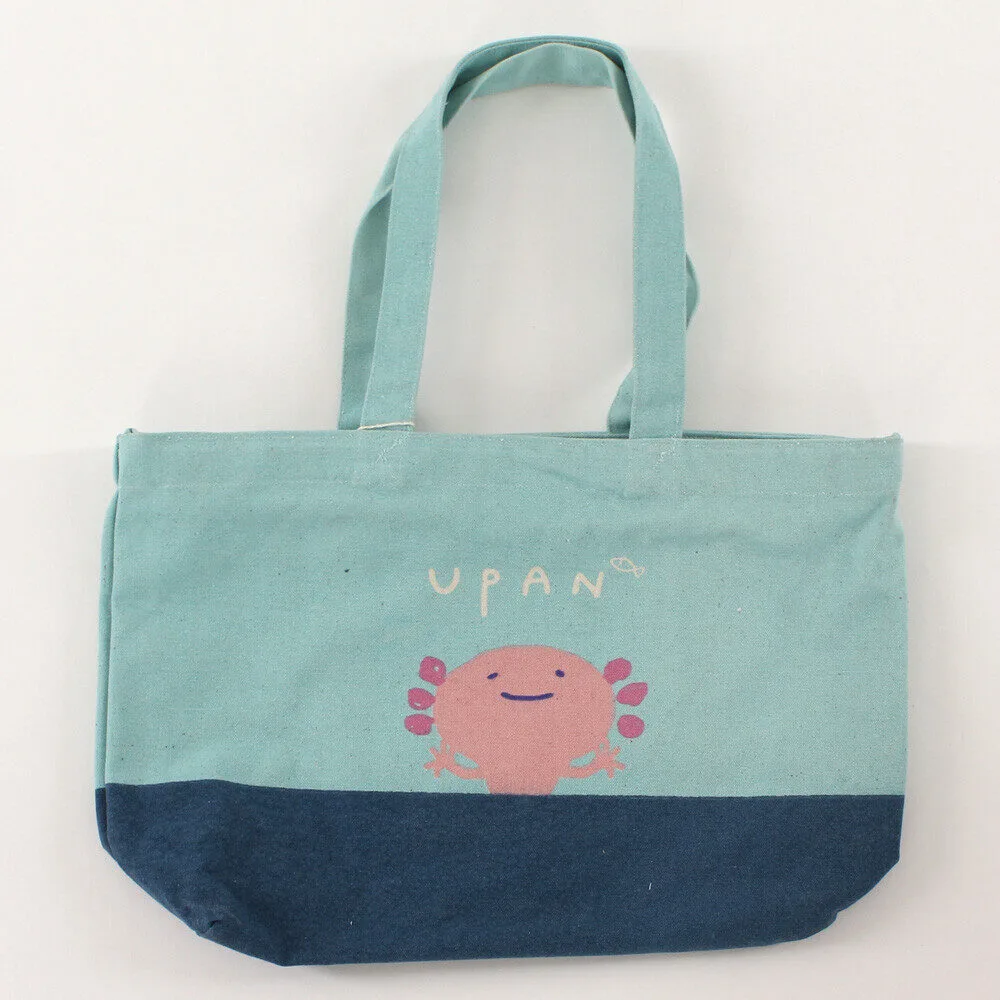 Yoisho Upan Blue Axolotl Tote Bag , A4, with pocket attached.